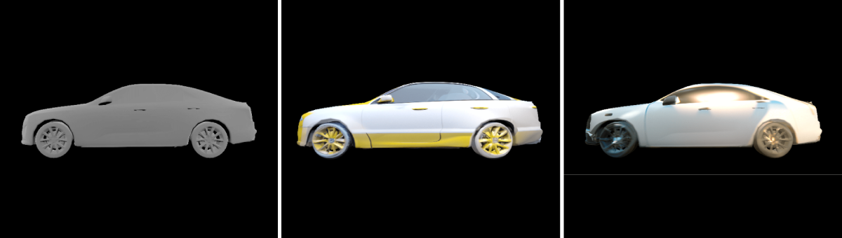 图一为原始模型, 图二图三为贴图后的模型。提示词:car, Realistic , photography , hyper quality , high detail , high resolution , Unreal Engine , Side view