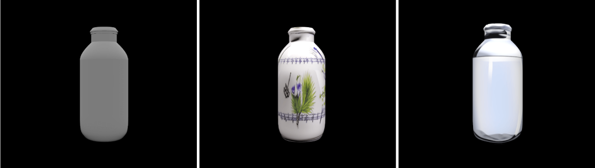 图一为原始模型, 图二图三为贴图后的模型。图二提示词:Realistic , photography, bottle, porcelain