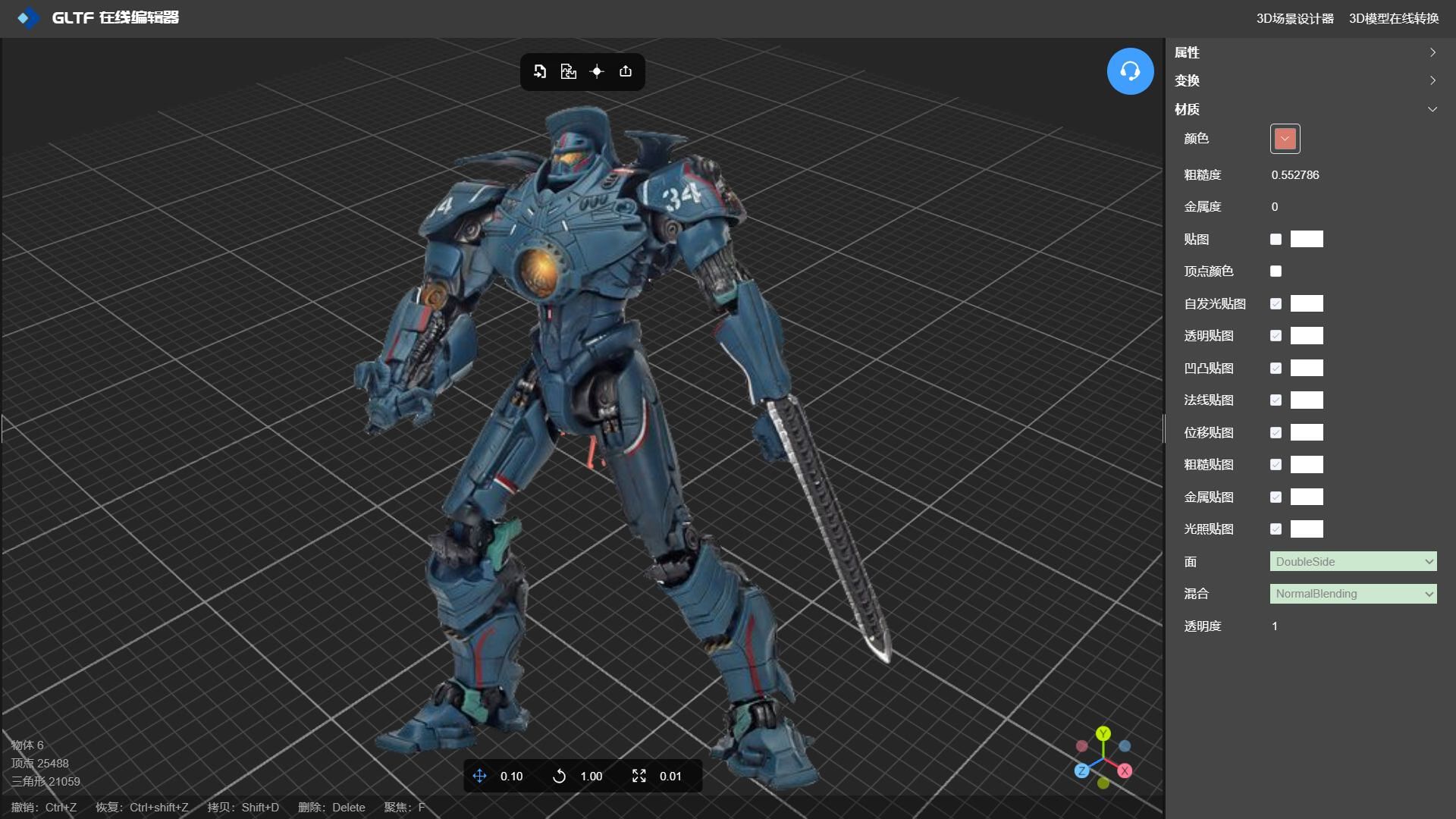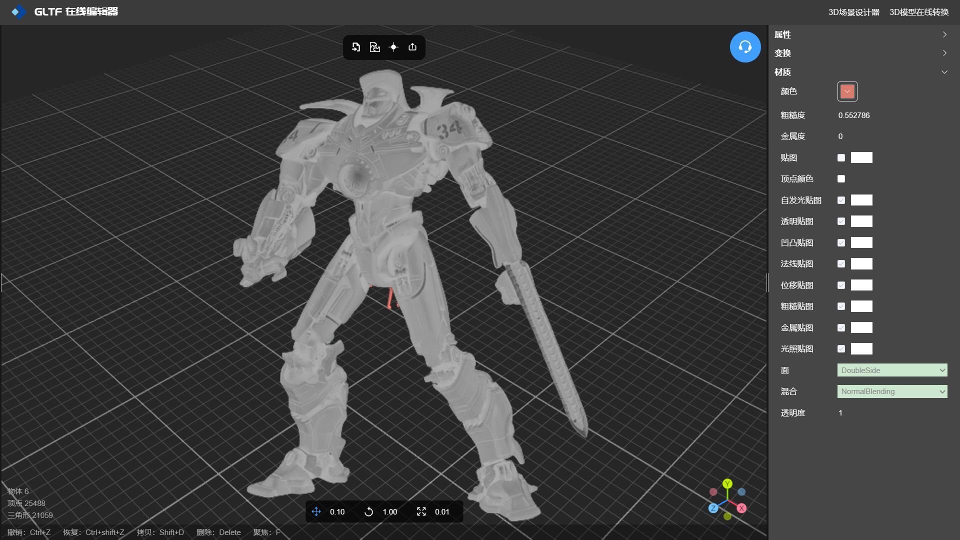 GLTF 编辑器 -NSDT 不仅可以设置3D模型纹理贴图,还可以设置模型的几何原点、以及对有相同材质属性的mesh进行合并,实现模型轻量化,是一款不可多得的实用型在线模型编辑工具。