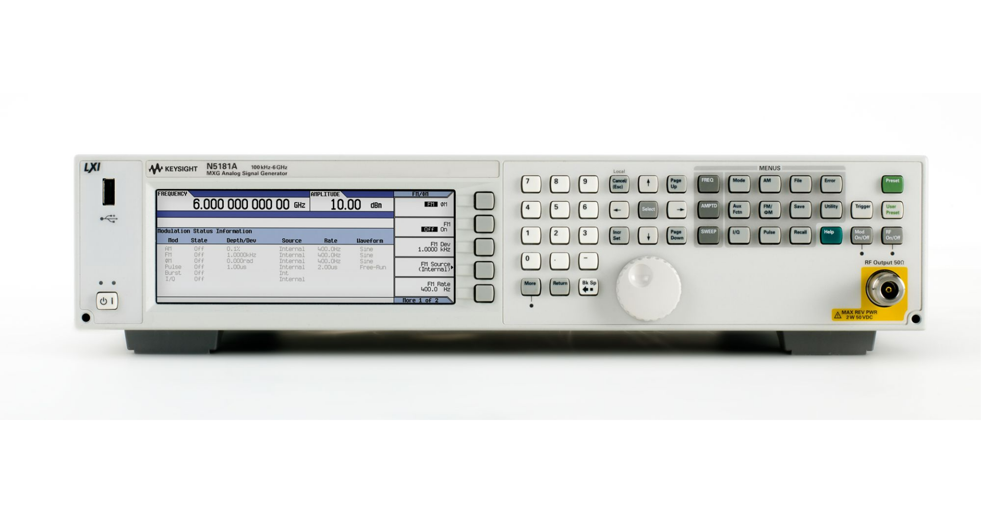 N5181A MXG 射频模拟信号发生器在研发和制造用中档性能射频模拟信号发生器可以覆盖 100 kHz 至 6 GHz 的频率范围。