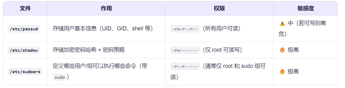 (2)/etc/passwd、/etc/sudoers和/etc/shadow