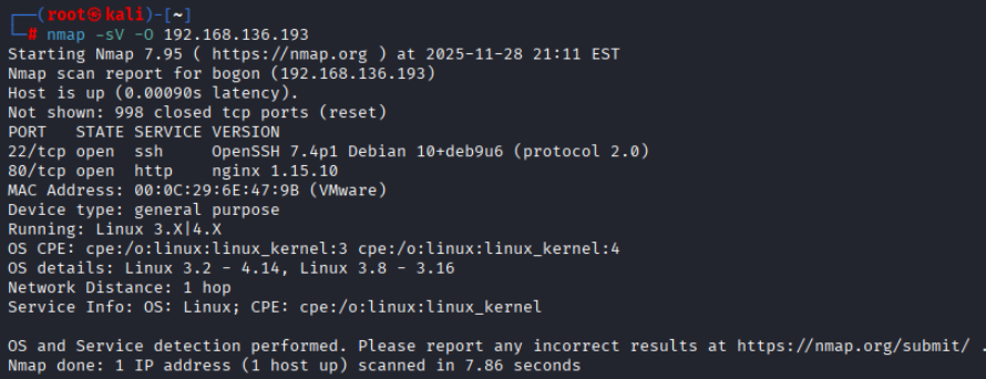 使用nmap扫描发现,靶机dc4开放了2个入口,ssh服务和http服务。