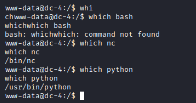 在这里,要注意bash不能执行,nc和python可以,同时这个目录www-data是没有写的权限的,