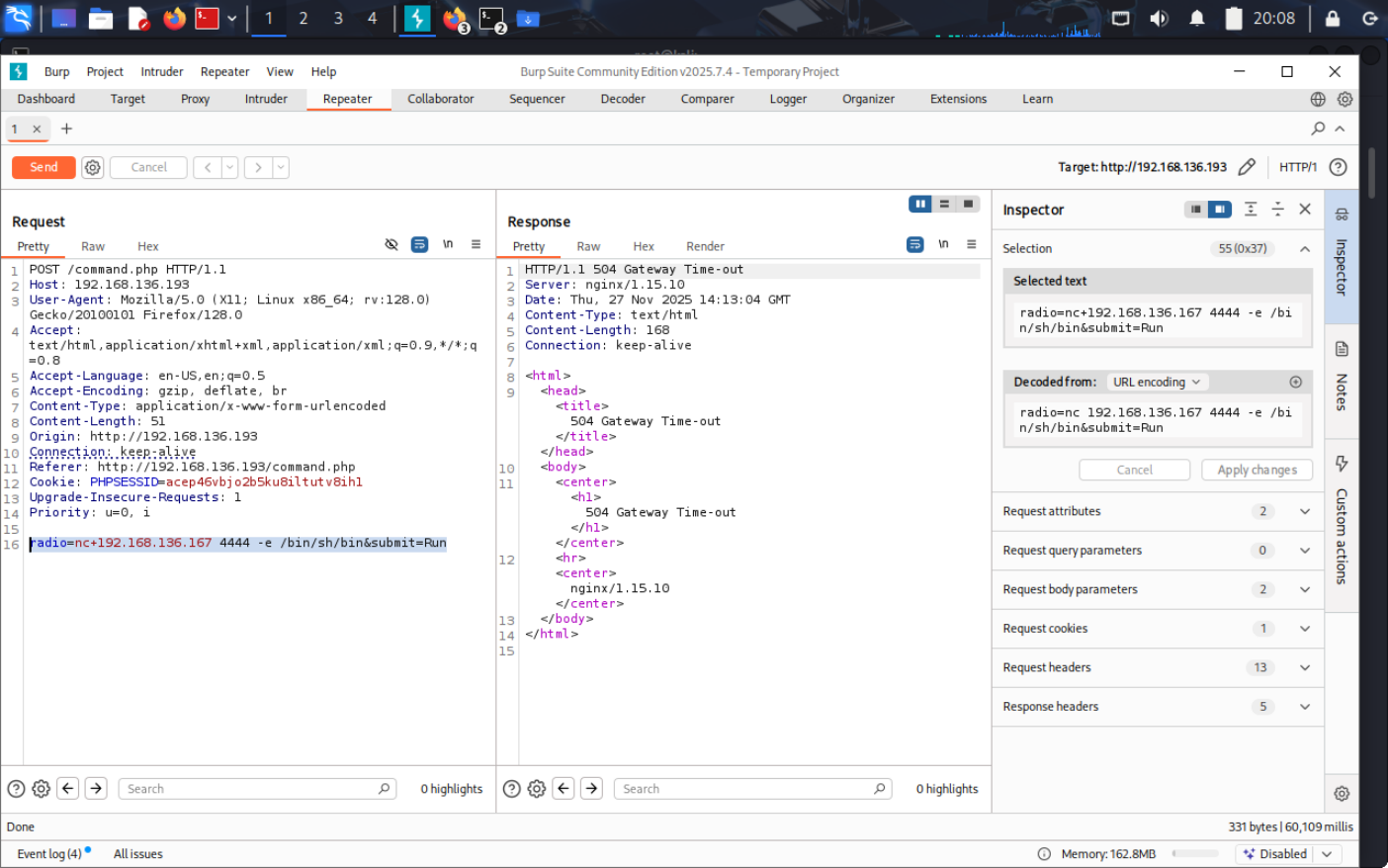 因此文件上传、/dev/tcp回连都不行,只能用nc -e。