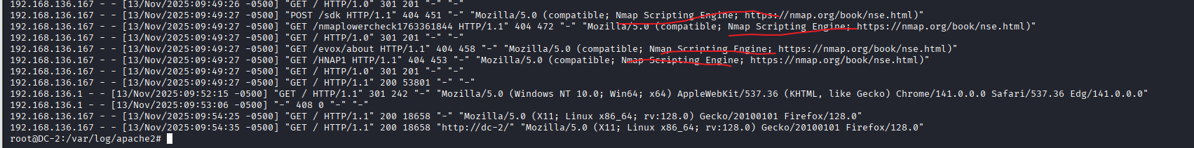 可以nmap扫描会在user-agent字段中留下nmap scripting engine的痕迹;