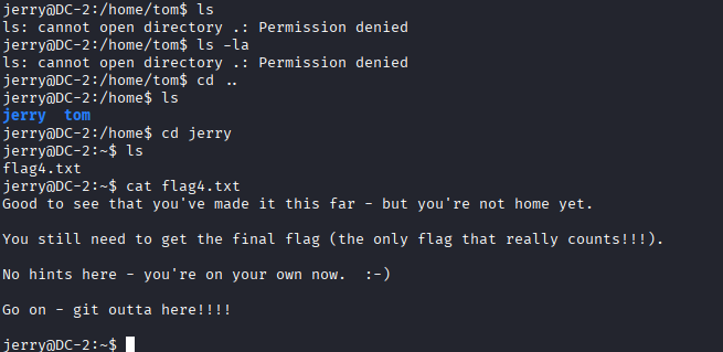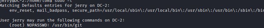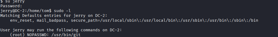 根据提示拿到最后的flag还需要git,而jeryy恰好可以无需密码运行git
