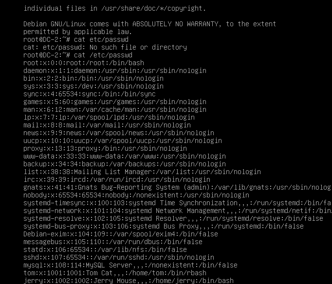 查看用户信息,系统禁止使用root(已经被我修改可以登录)、可以用的账户有tom和jerry,其中: