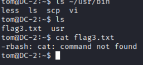 登录后发现存在flag3,但是无法读取,查看发现仅允许运行4条命令,不过里面有vi
