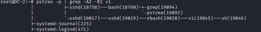 这一步可以帮助我们绕过rbash,输入如下命令,通过vi提权获得了/bin/sh的权限