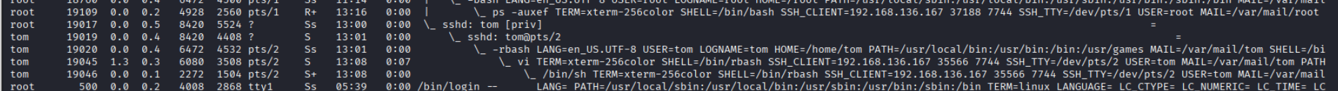 也就是说ssh登录只能通过tom用户登录,shell是rbash。