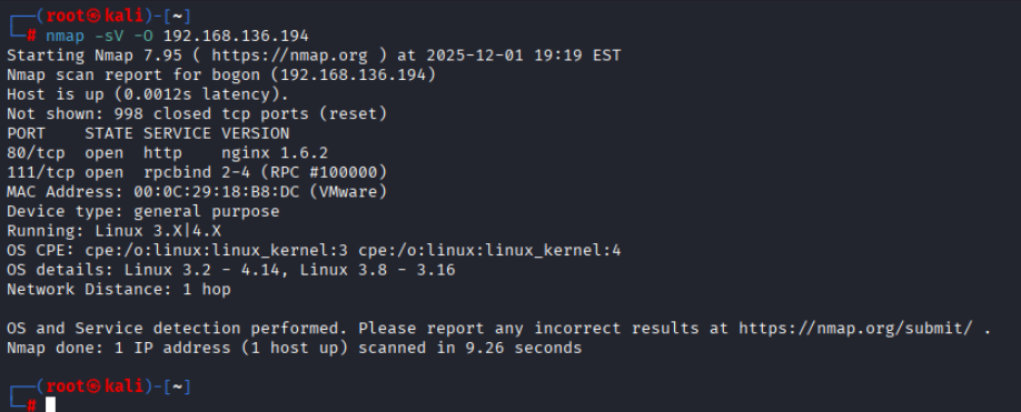对靶机扫描发现,开放了80端口和111端口,其中111端口没啥特殊服务,真正的入口只有80端口,80端口用的是nginx 1.6.2。
