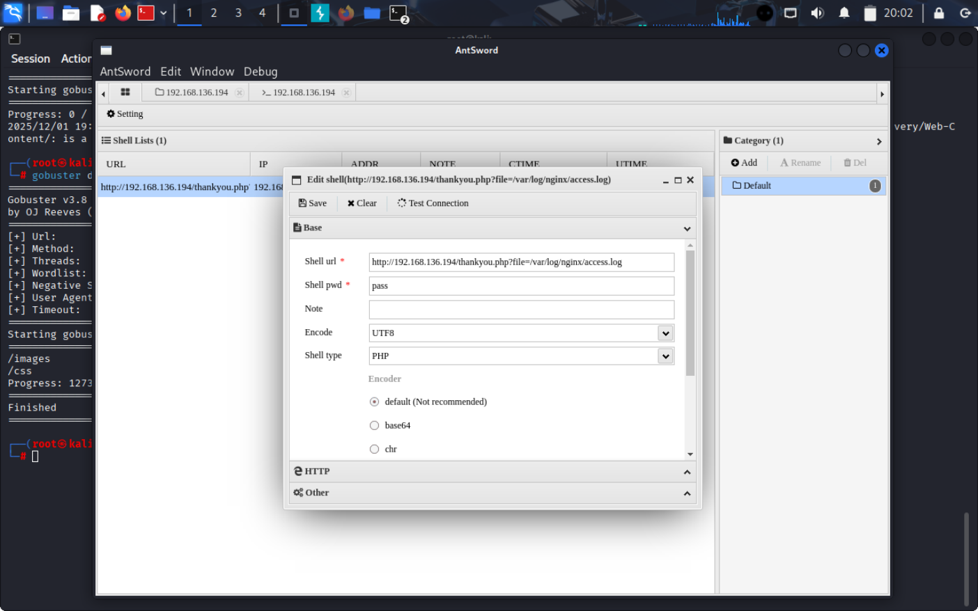 用antsword访问,访问后再虚拟终端里,用nc建立反弹shell