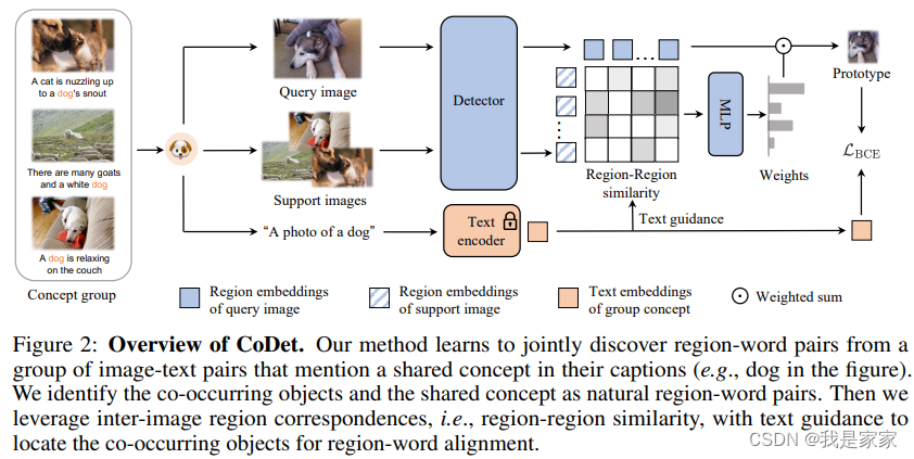 本文介绍了一种新颖的CoDet方法,通过将区域-文字对齐问题转化为共生目标问题,降低对预对齐空间的依赖。利用图像中具有相同概念的目标的共生性,结合视觉相似性,实现目标对齐和概念关联。