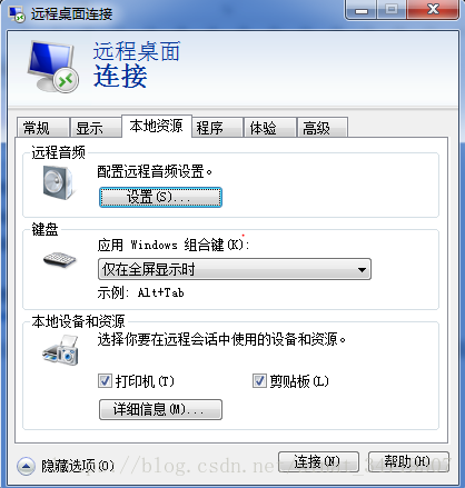 点击选项-》本地资源-》本地设备和资源-》勾选打印机和剪贴板