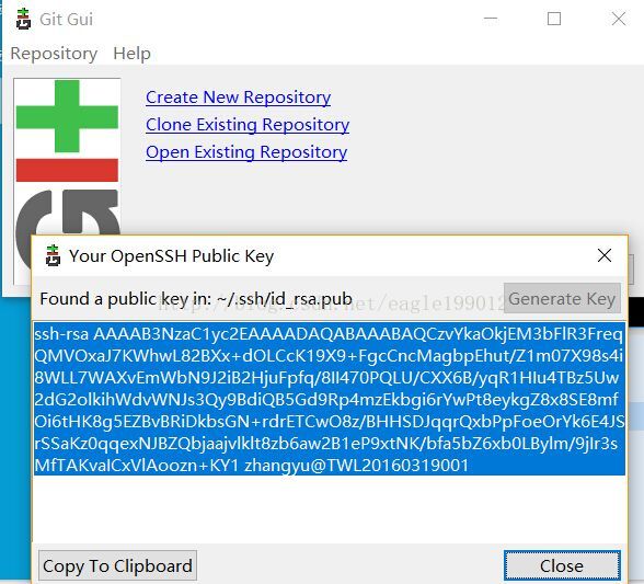 (3)通过直接使用命令将id_rsa.pub文件里的内容复制到剪切板中