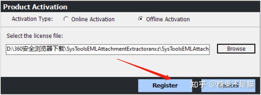 选择SysTools EML Attachment Extractor.Lic文件进行激活,然后点击register