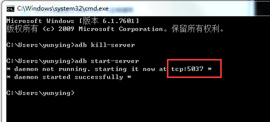 如果在准备工作无误的情况下,仍旧无法看到你的Android设备,请检查你PC的adb端口。查看adb的端口,使用adb start-server命令,可以看到端口,如果已经启动adb服务,先调用adb kill-server关闭服务。