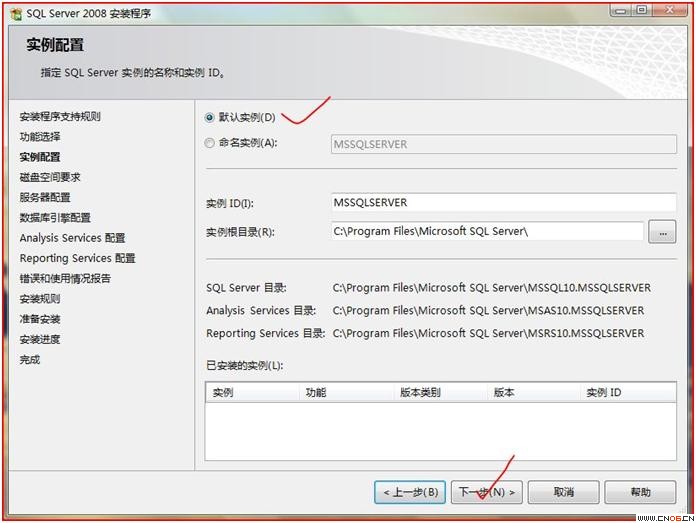 配置实例并选择安装路径;从图中可以看出,虽然实例安装到了 D 盘,但只用了 784M,将近 2G 的内容都安装到了 C 盘,因此我们选择直接安装在C盘默认文件夹下;