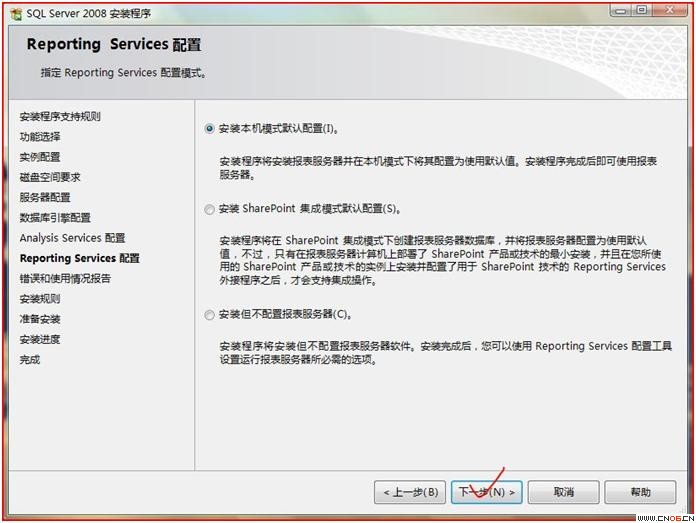 Reporting Sevice配置,直接默认,选择”下一步”;