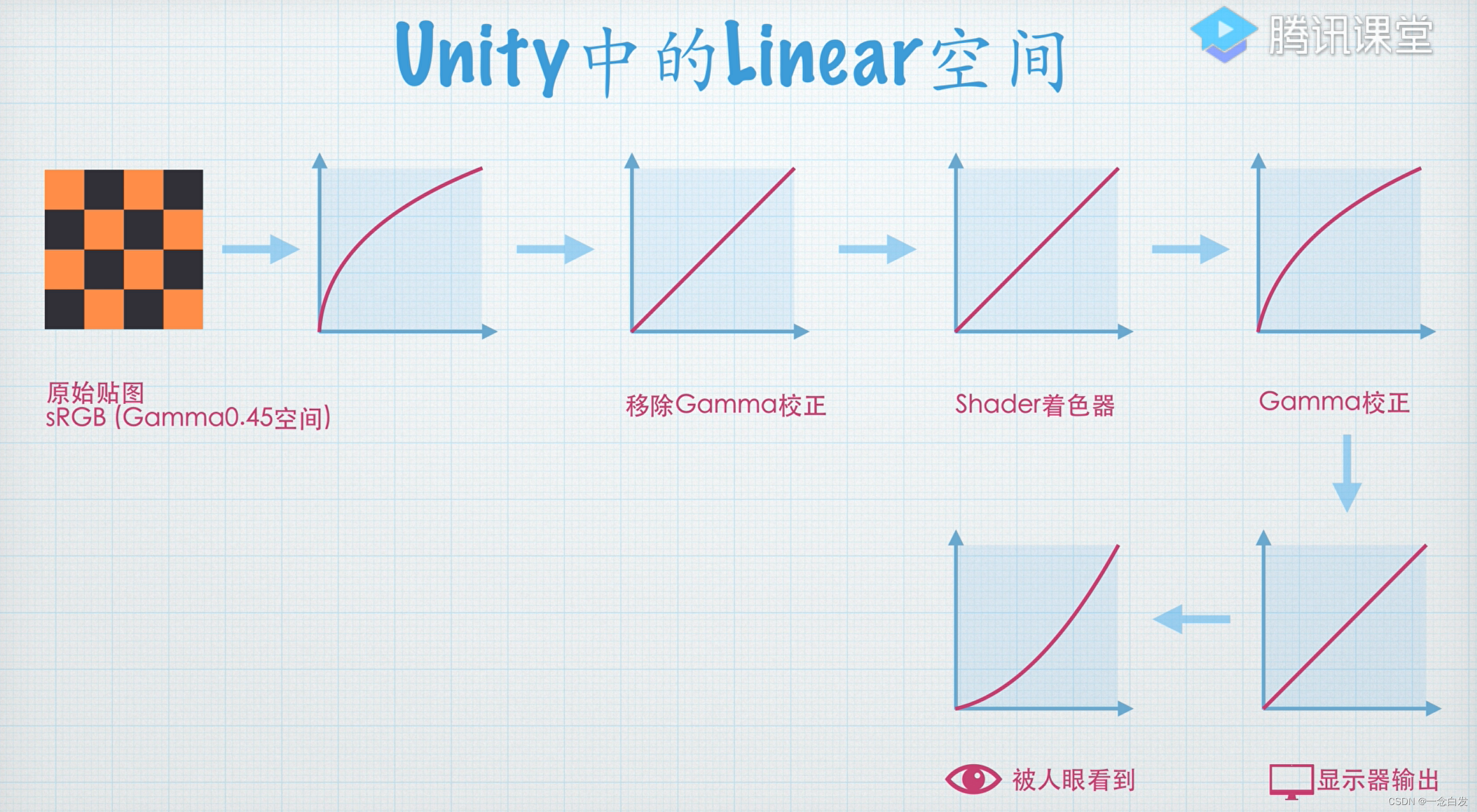 然后就可以得到他们分别的结果,再次换到一个空间中,对于下面我们不考虑shader之前的东西。shader中就够了,shader中你是线性空间就是该贴图的线性空间的值,gamma就gamma空间的值,这俩值能换算。这样就够了。