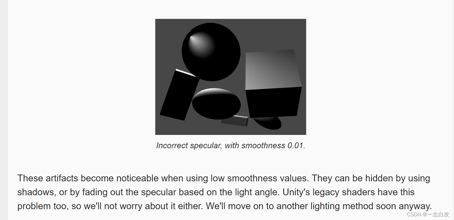这里明白这个情况就行了,在这种情况下,视线和法线基本上重合,然后这时候光线从背面照射过来,half就有可能和法线有一个小于90度的夹角,而当smoothness非常小的时候,这时候光照面积非常大,这种效果也就比较明显。