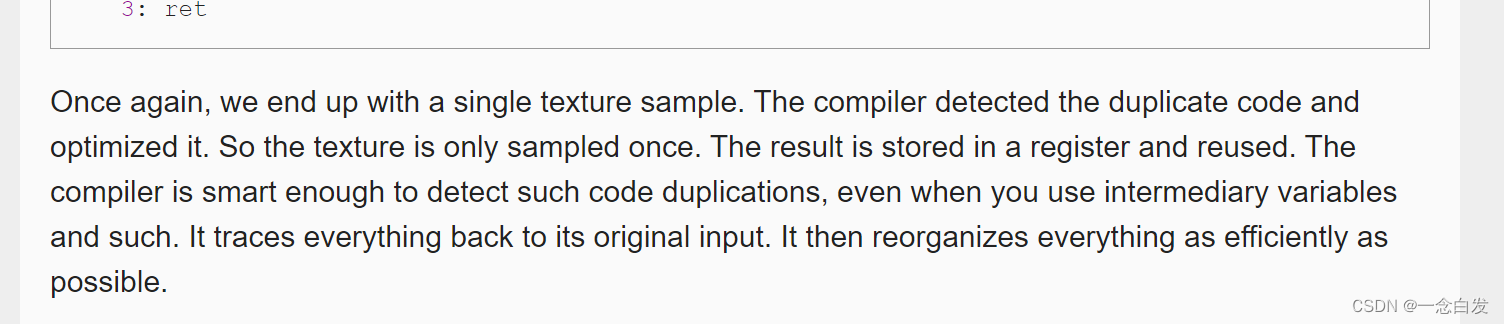 之前采样两次,其中一次没有使用,编译器优化掉了。这次采样相同的,采样两次都使用了,编译器也进行了优化,只采样一次。