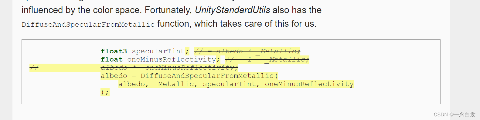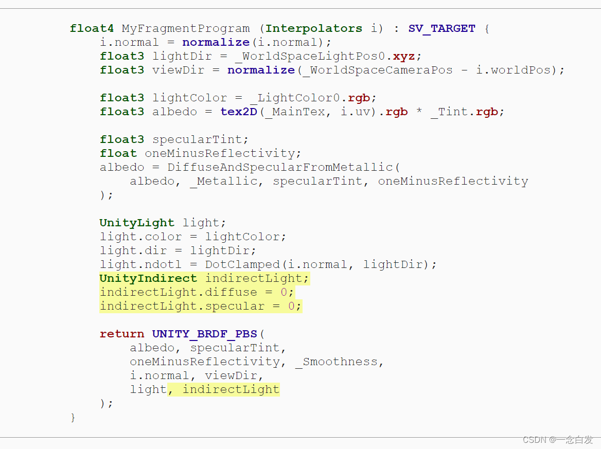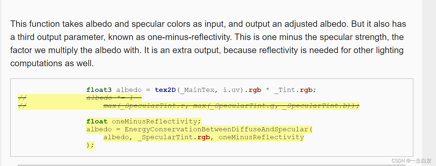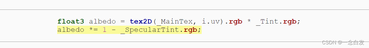 对于albedo则是和刚刚一样,需要乘以 1-减去高光颜色,这一点就是和之前能量守恒一个思路。