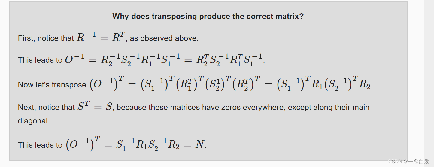 然后在推导的时候,首先得到了逆矩阵。然后这个逆转置之后就是N。