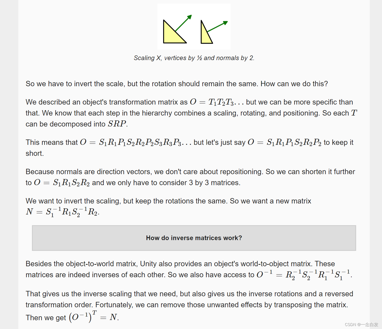 这里讲解normal的逆转置的时候挺有意思,直接看出来只有scale的时候需要逆,而旋转不需要逆,平移这些直接忽略。