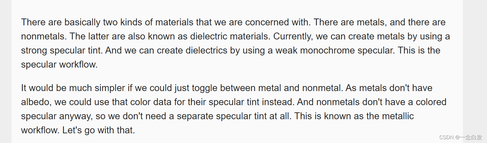 我们之前对于一个物体的描述,光照计算是基于specular来对物体进行diffuse和高光计算的,基于specular来对金属和非金属进行区分的。