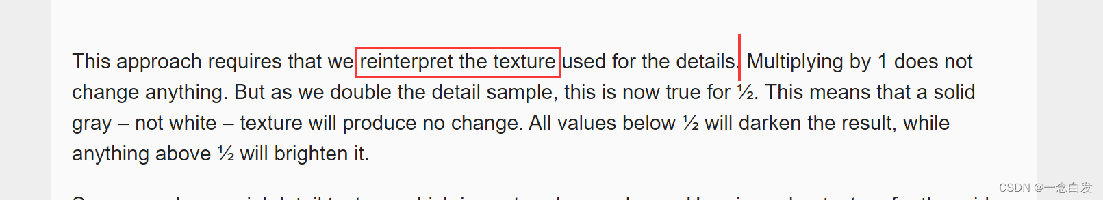 那么这里是如何调节的呢?总的来说 主纹理都去乘以了一个数,这个数是:detail*2,那么意味着,如果detail是纯灰色(0.5)那么主纹理就不会变,而如果是大于0.5,那么就会变亮,小于0.5就会变暗。