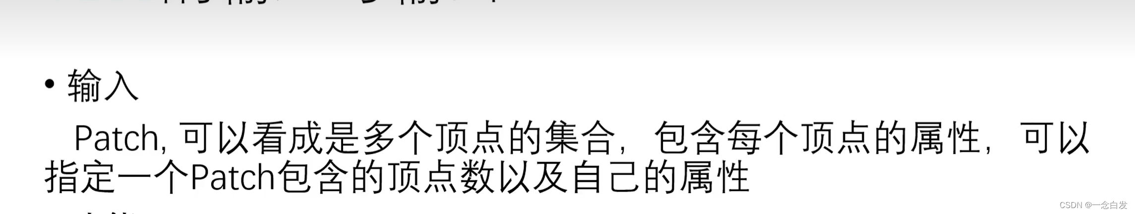 会有一个输入参数,patch,多个顶点的几何,同时会传进来一组属性,这个属性是这些顶点共用的,也就是针对这个patch的。