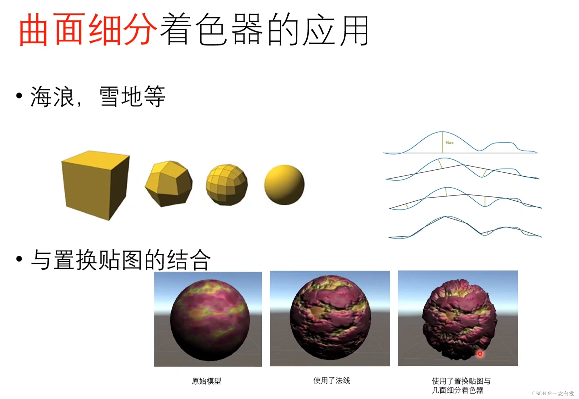 这里并不直接使用高精度的模型,而使用曲面细分,是因为这家伙会动脑子,他会根据距离和一些规则等信息来调整哪里需要细分,哪里不需要,哪里需要细分的精致,哪里需要需要粗略的细分。