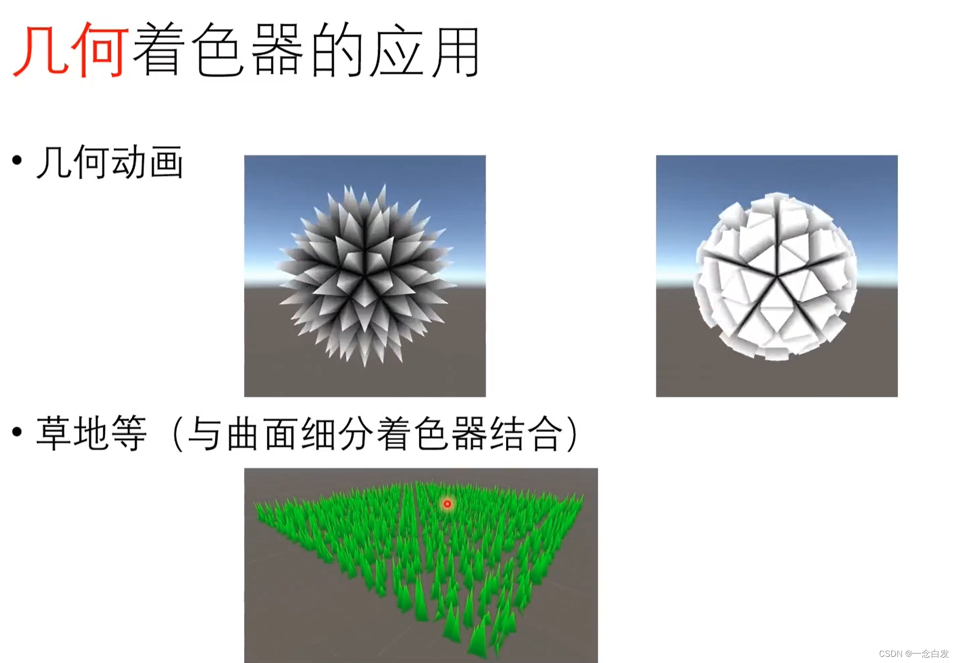 针对第三个就不一样了,他是真的对物体表面的顶点进行偏移。注意是顶点,像素是没办法偏移的,fragment出现的时候都是投影后的结果了,便宜肯定要在3D空间进行的,只能偏移后再投影,而投影之前没有fragment这一说,我们能够操控的就只有顶点,让顶点在3D空间下进行一个偏移。