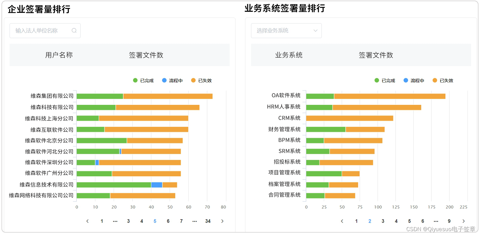 通过智能数据报表即可调取所有分子公司、各类与契约锁集成对接的业务系统的签署情况,哪个公司用印频繁、哪类业务用印需求多,用印需求处理进度如何,通过多样化报表即可呈现。