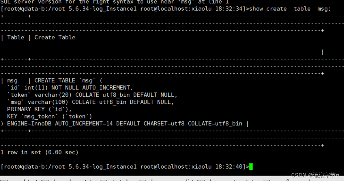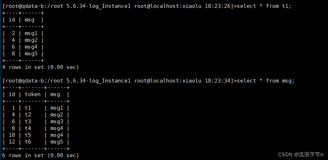 | root@localhost> select id,class_name,teacher_id from class_teacher; +----+--------------+------------+ | id | class_name | teacher_id | +----+--------------+------------+ | 1 | 初三一班 | 1| | 2 | 初三二班 | 1 | +----+--------------+------------+ 2 rows in set (0.00 sec) | ||