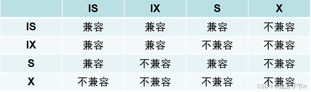 - 意向共享锁(IS Lock):事务想要获得一张表中某几行的共享锁