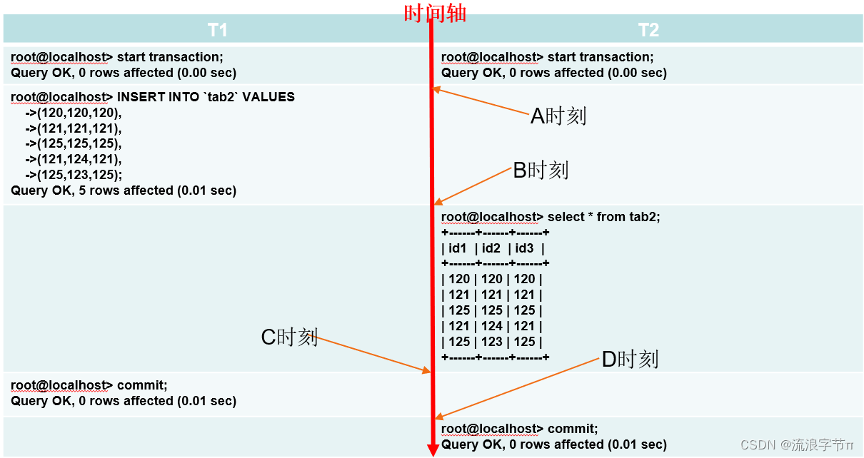 tab2在B时刻查询到了表的数据,但是如果在C时刻发生了回滚,那么tab1的数据的插入不成功的,其实这时表里是没有数据的,但是事务tab2却查询到了数据,这就导致数据不一致了。