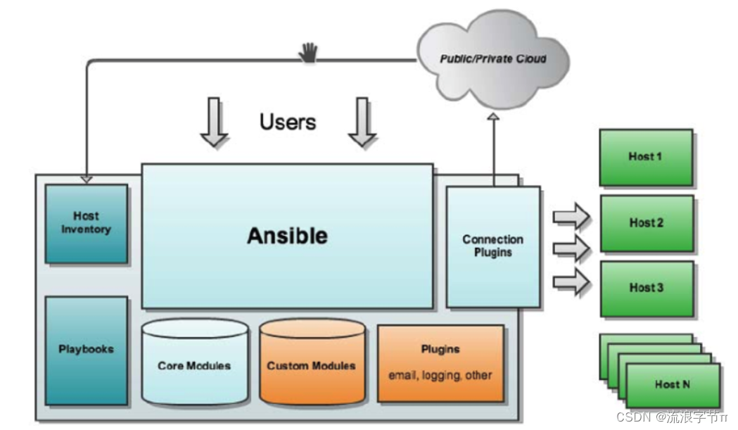 Ansible是基于模块工作的,架构图如上图所示,主要包括: