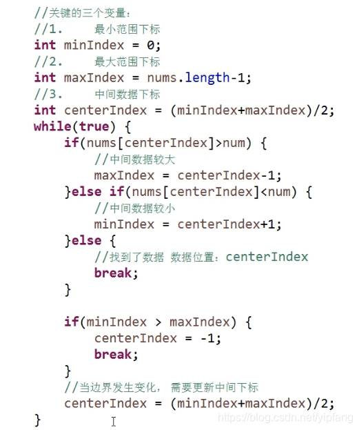 3、比较中间下标数据,中间数据大,则最大下标变为中间下标-1;中间数据小,则最小下标变为中间下标+1