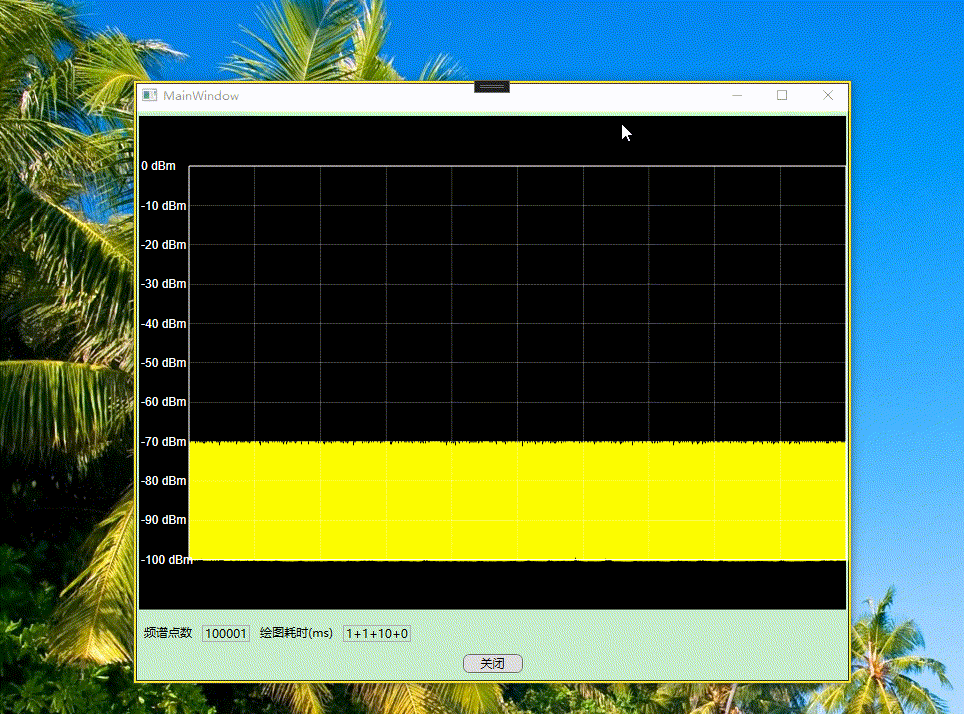 至此,我们了解了基本原理,让我们据此以一个示例实现绘图。该示例实现绘制频谱分析仪的频谱图。
