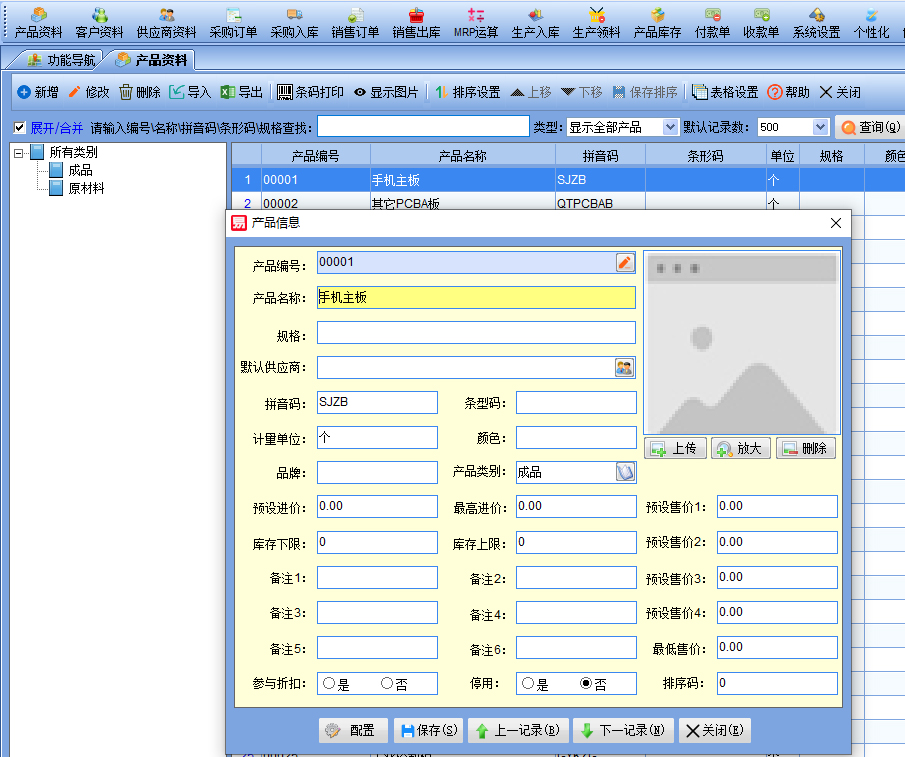二、【基本信息】-【产品资料】,建立好产品资料,就是要生产的产品。