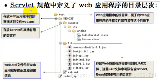 一个web应用程序是由一组Servlet,HTML页面,类,以及其他的资源组成的运行在web服务器上的完整的应用程序,以一种结构化的有层次的目录形式存在