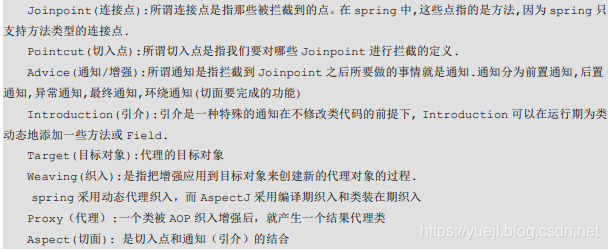 在AOP 中有一些常用的概念,如 切点,连接点,切面等。