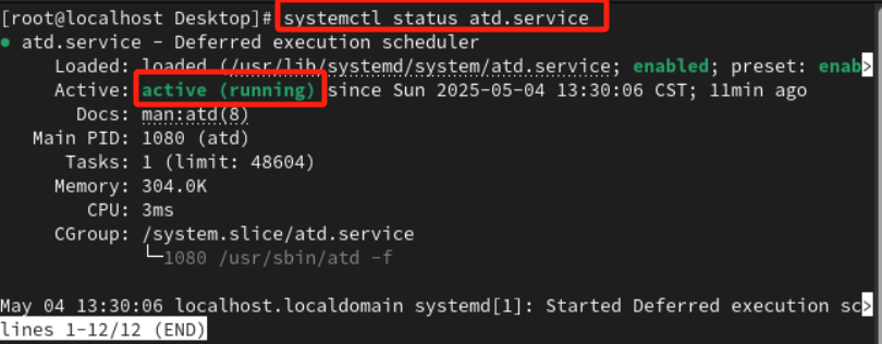 首先先查看atd的守护进程是否开启,如关闭则系统延时任务无法使用