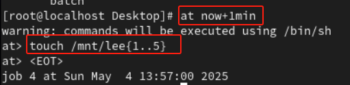 在比如说从现在开始的一分钟后执行任务,在/mnt中建立文件