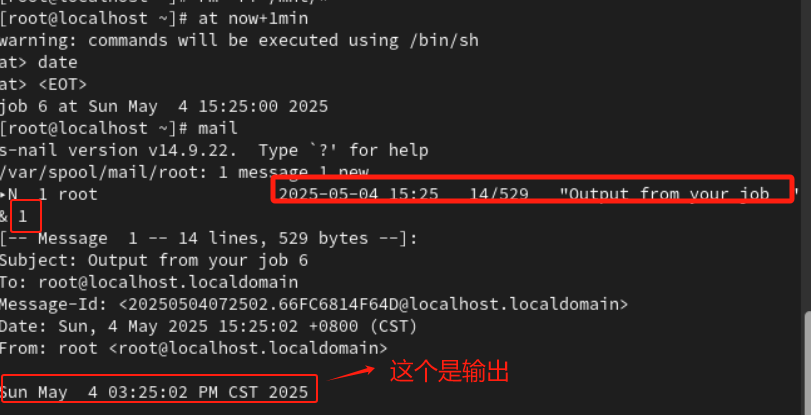 然后发起一个延迟任务,当延迟任务有输出那么这个输出会以邮件的形式发送给at命令的执行者