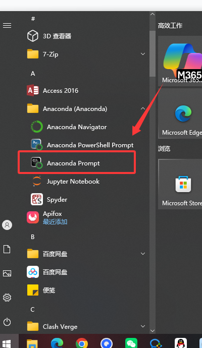 首先,在开始菜单中搜索 “Anaconda Prompt”,然后点击打开它。如果需要进行一些系统级的操作,也可以选择 “以管理员身份运行”。