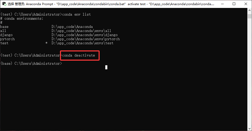 执行命令后,就会退出当前虚拟环境,回到基础环境。