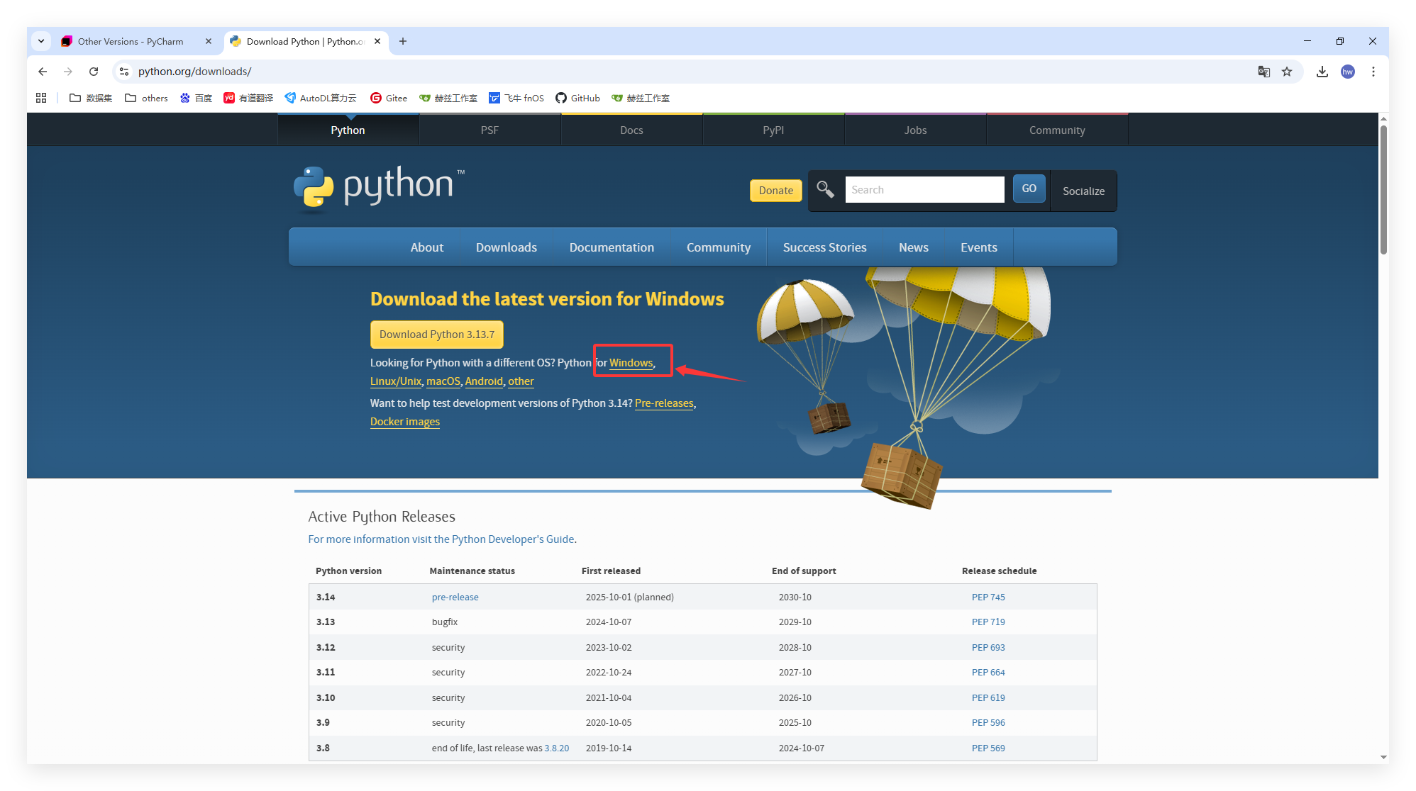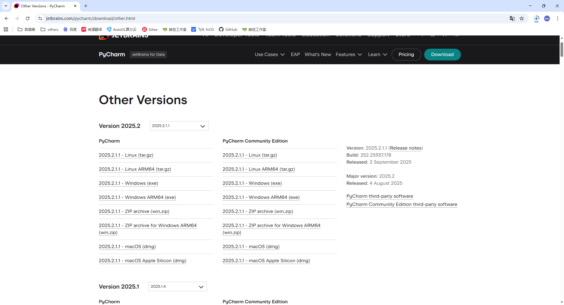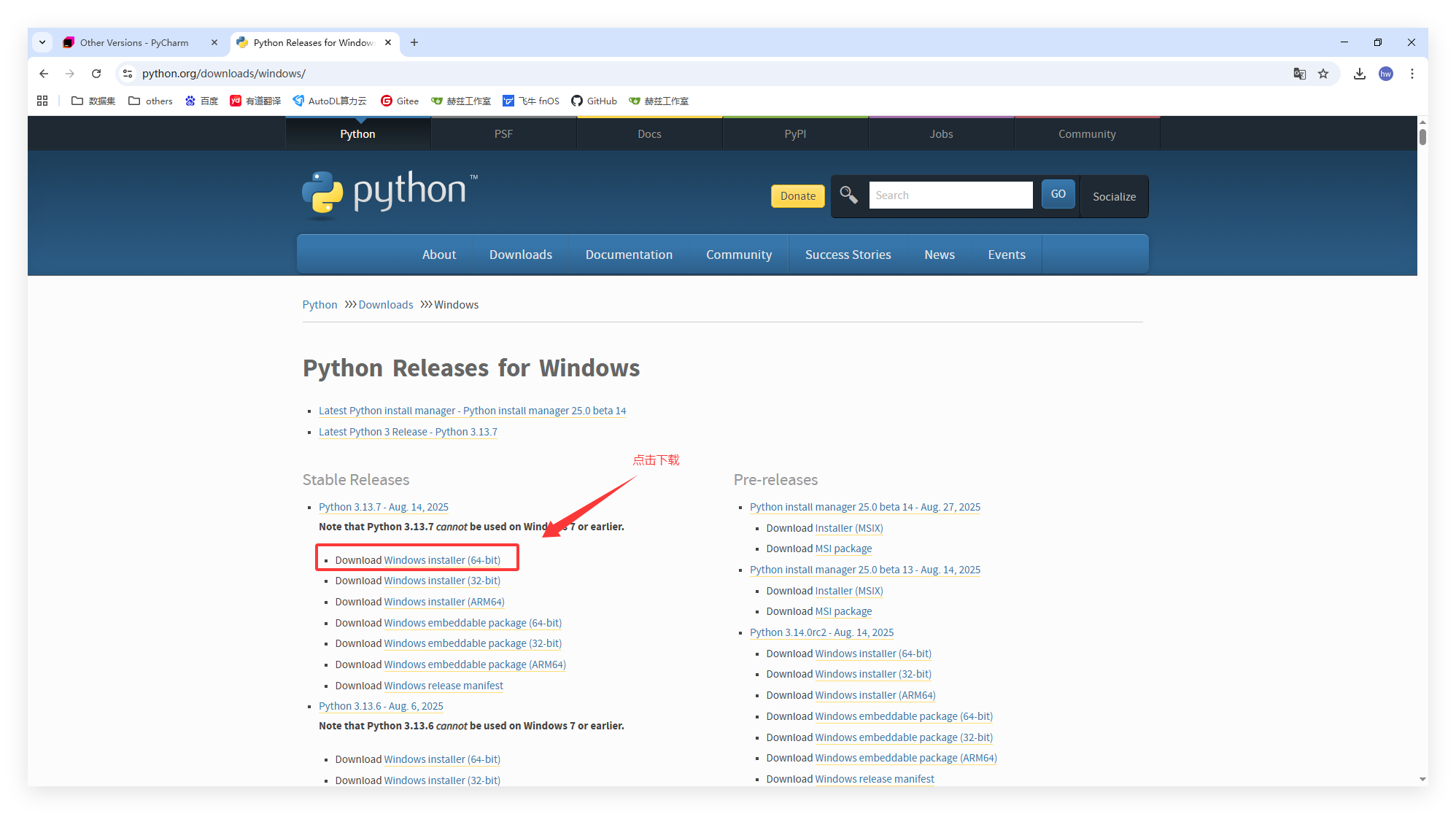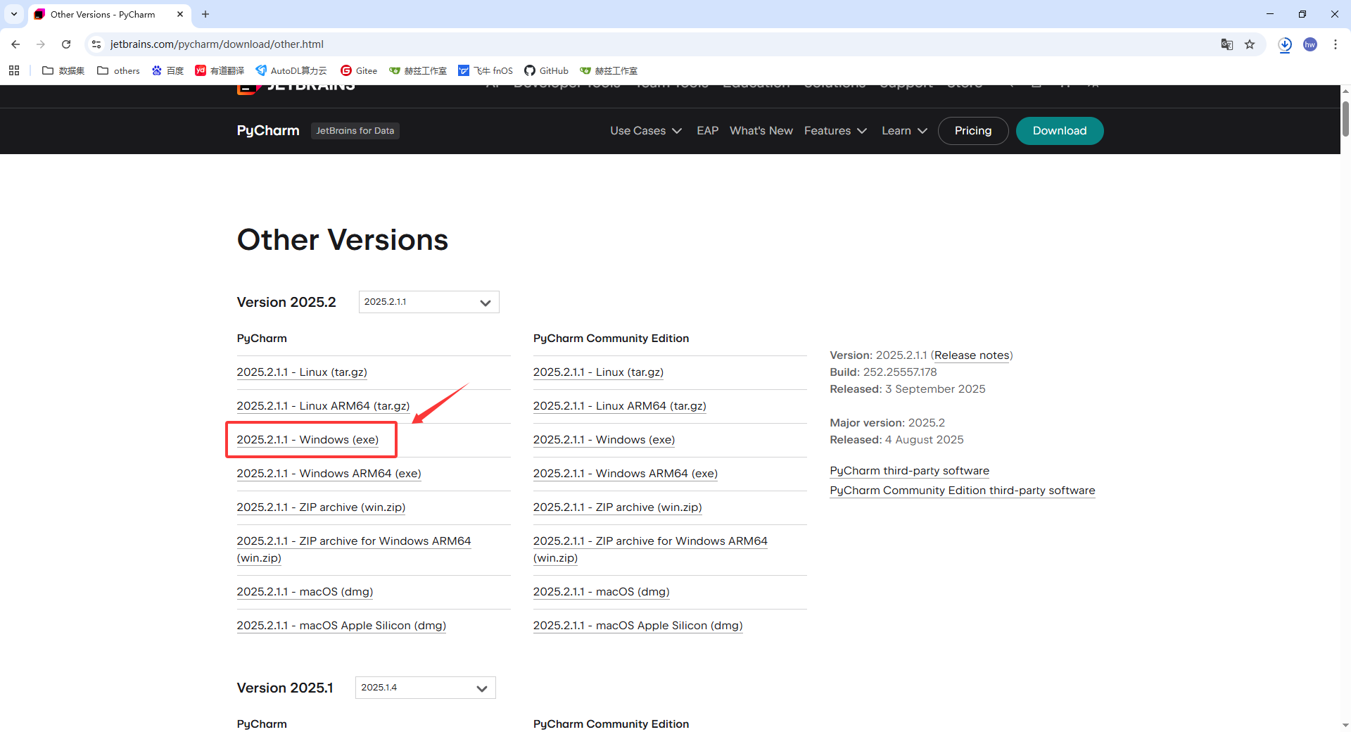 - 打开浏览器,访问 PyCharm 官网:PyCharm官网下载链接